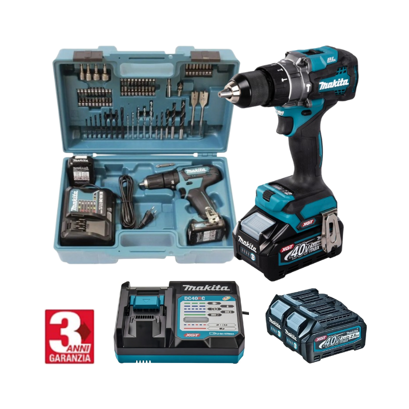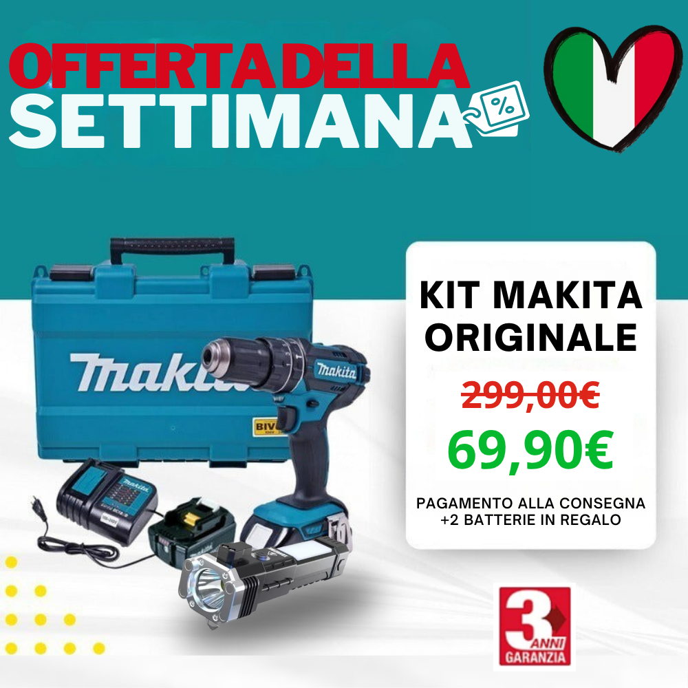 KIT ORIGINALE MAKITA: TRAPANO AVVITATORE A PERCUSSIONE PER FORATURE E AVVITATURE GRAVOSE + 45 ACCESSORI + 2 BATTERIE 48V - SUPER OFFERTA DI LANCIO!