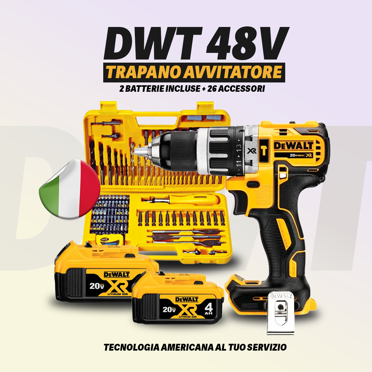 Trapano Originale Avvitatore DWT 48V | 2 Batterie Incluse + 26 Accessori | Prestazioni Elevate e Qualità Garantita